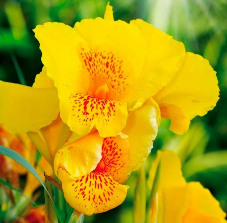 Канны Йеллоу Хамберт – это великолепное украшение для вашего сада, которое привнесет яркие солнечные оттенки и экзотическую атмосферу. Этот сорт канн отличается крупными, насыщенно-желтыми цветами с легким оранжевым оттенком, которые распускаются на высоких, прочных стеблях. Листья растения – широкие, зеленые, с глянцевым блеском, создают эффектный контраст с яркими цветами.