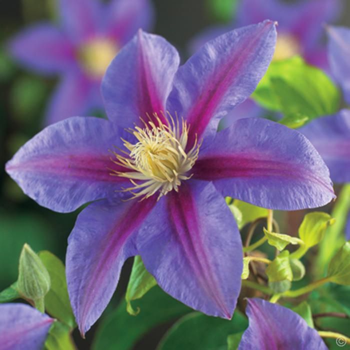 Клематис Барбара Джекман (Barbara Jackman) – это великолепное многолетнее вьющееся растение, которое станет настоящим украшением вашего сада. Этот сорт клематиса отличается крупными, яркими цветами насыщенного фиолетово-синего оттенка с контрастной красной полосой по центру лепестков. Цветение начинается в конце весны и продолжается до начала осени, радуя глаз своей красотой на протяжении всего сезона.