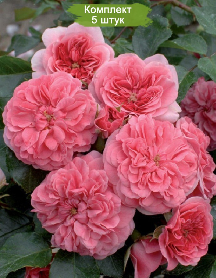 В комплект входит 5 саженцев почвопокровной розы Les Quatre Saisons, готовых к высадке и быстрому росту.