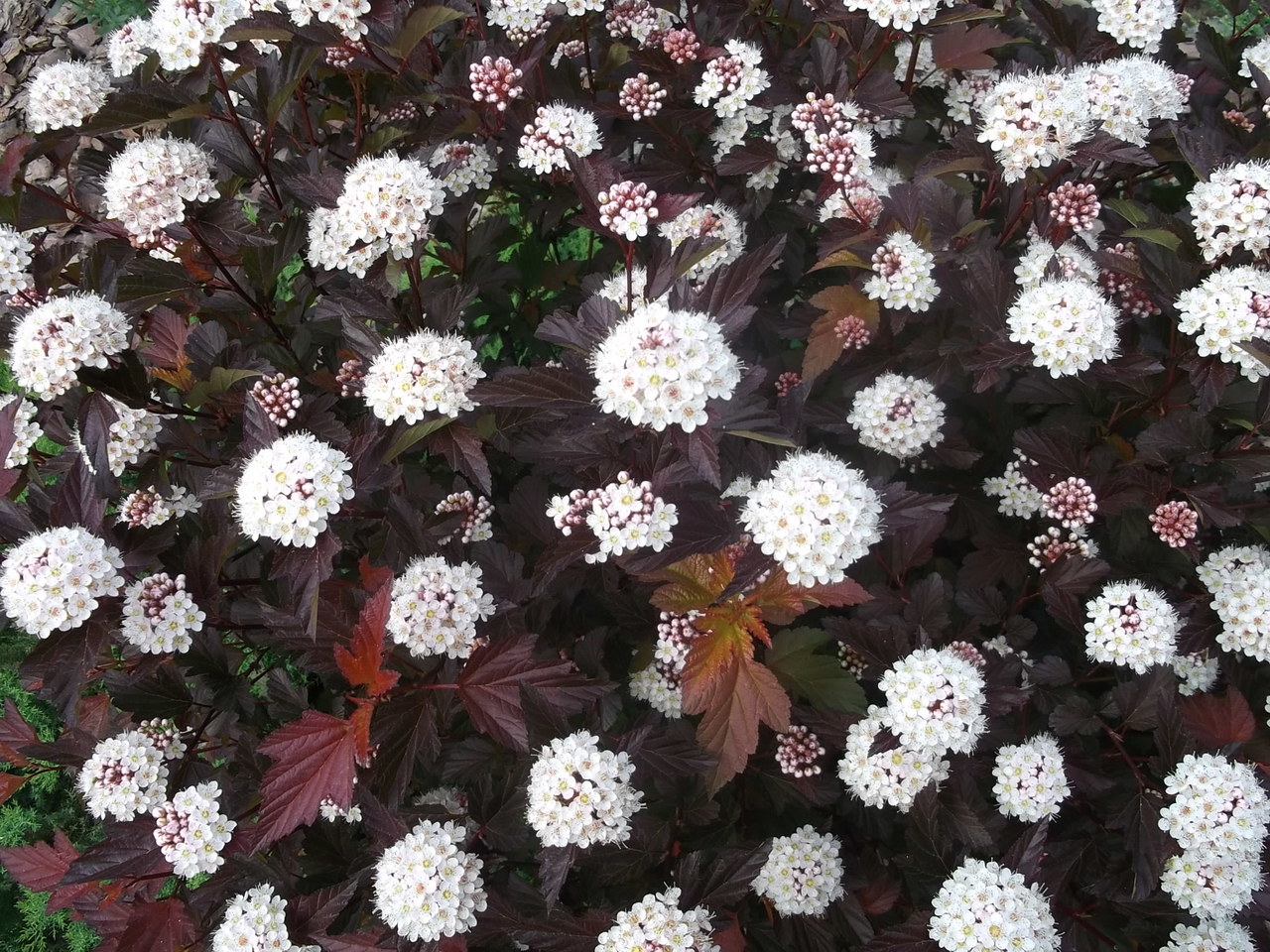 Пузыреплодник калинолистный Диабло (Physocarpus opulifolius 'Diabolo') – это великолепный декоративный кустарник, который станет настоящим украшением вашего сада. Его отличительной чертой являются насыщенные темно-пурпурные листья, которые сохраняют свою яркость на протяжении всего сезона. В период цветения кустарник покрывается нежными бело-розовыми соцветиями, создавая контрастный и эффектный вид.