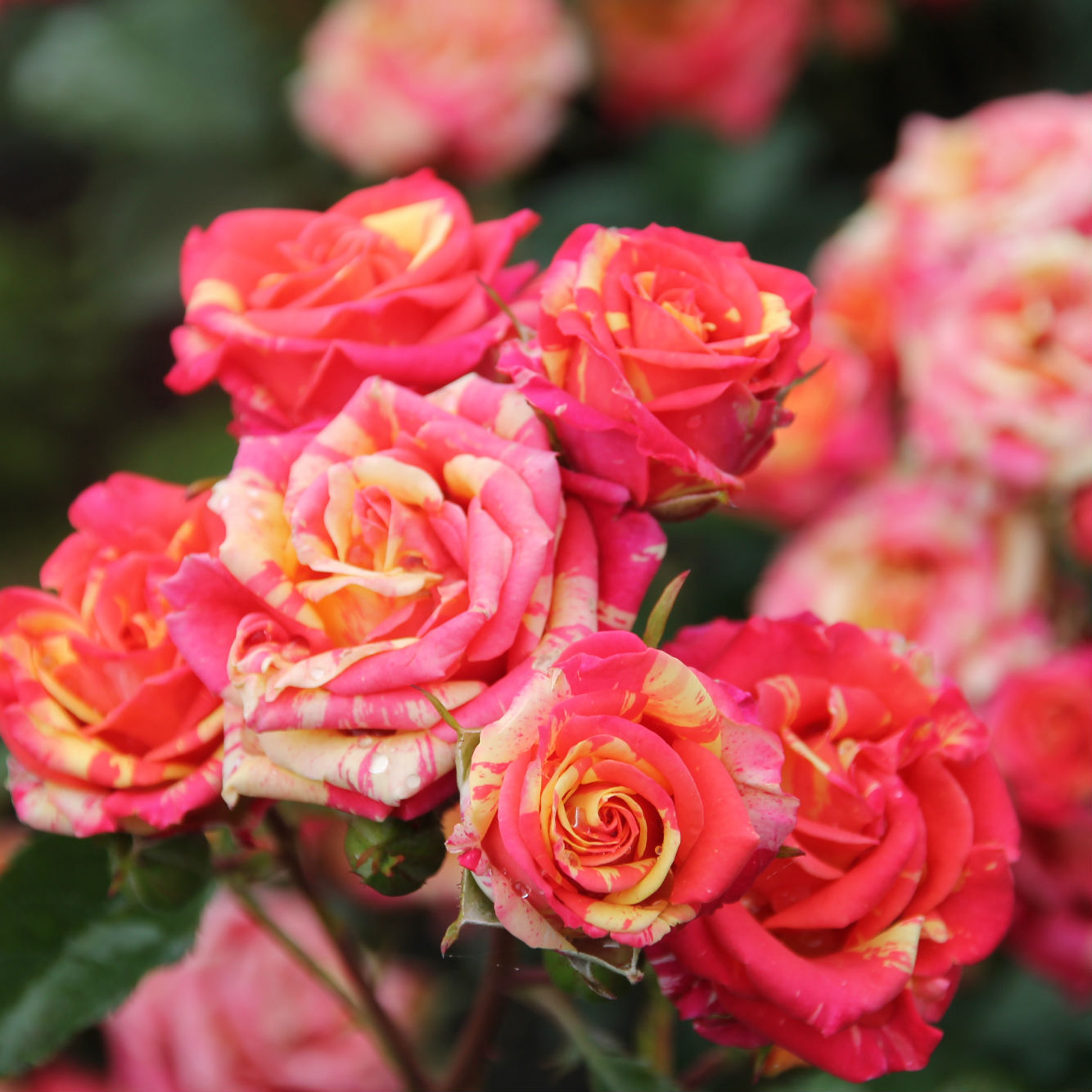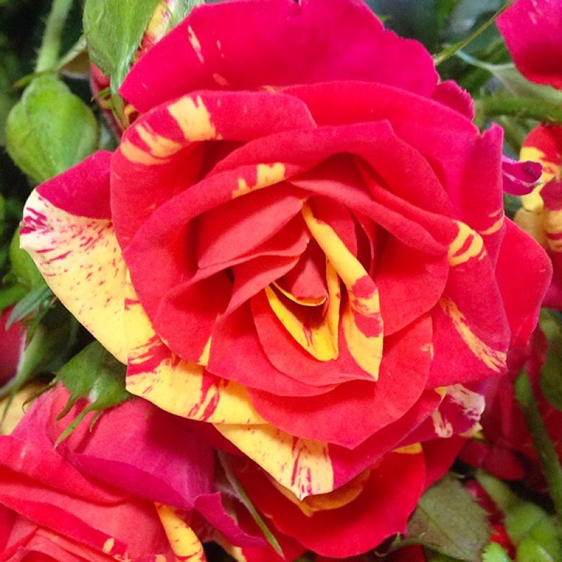 Откройте для себя великолепие спрей розы "Вспышка огня" (Fire Flash) – настоящего украшения вашего сада. Этот сорт розы привлекает внимание своими яркими, насыщенными цветами, которые переливаются оттенками огненно-красного и оранжевого, создавая эффект настоящего пламени.